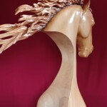 Cette œuvre a d’abord été réalisée en bois, disponible ici sous le nom de Cheval de vent. Ce médium permet une meilleure précision et permet également de mieux rendre vivante l’âme de l’œuvre.