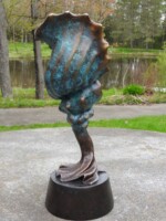 Ce bronze a été créé en souvenir d’une œuvre unique en pierre prénommée « La muse de Neptune ». Cette première œuvre a vue le jour dans mon imagination à la suite de l’observation minutieuse d’une pierre d’albâtre brute.